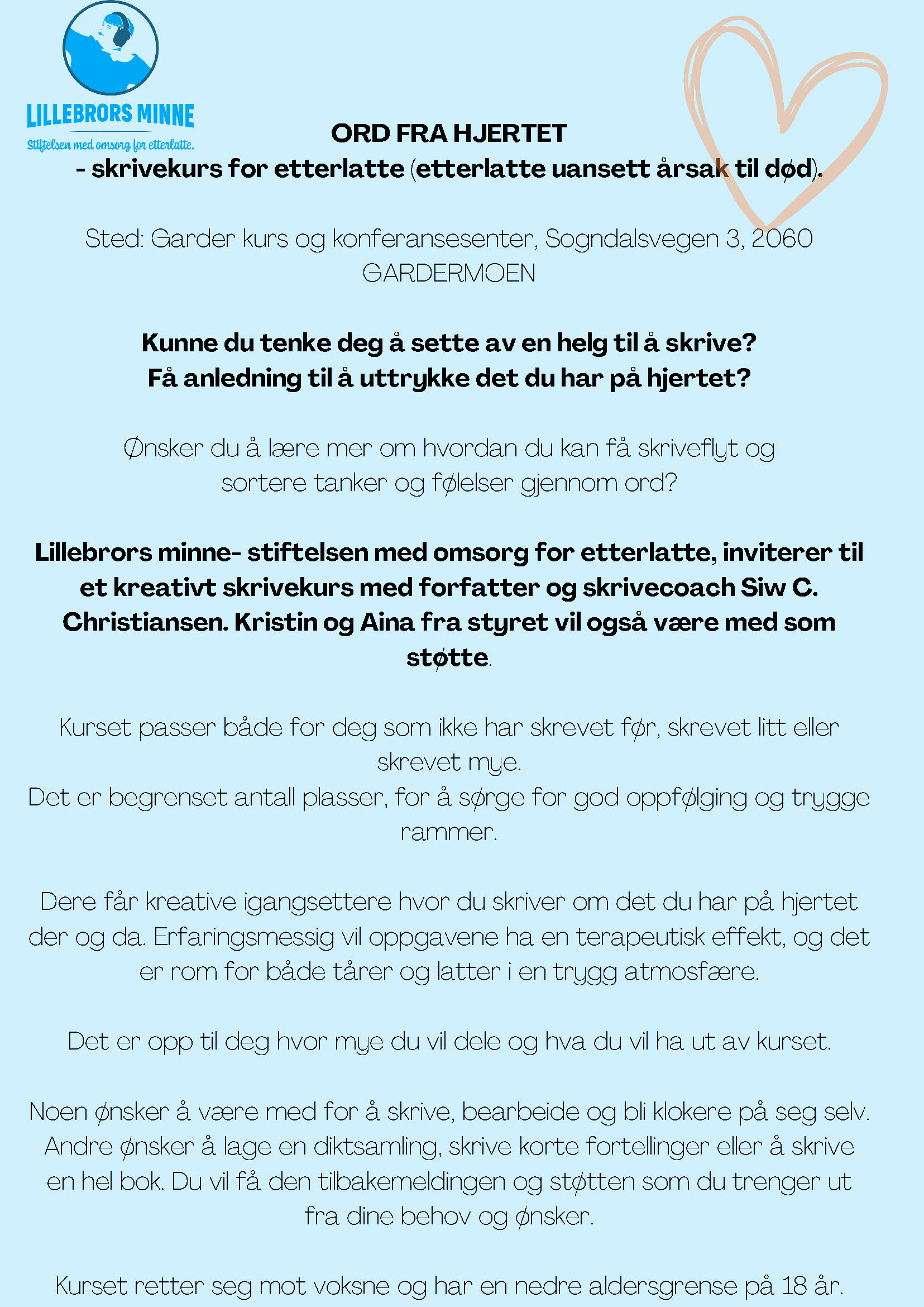 Ord fra hjertet - Skrivekurs for etterlatte - 30.08.24