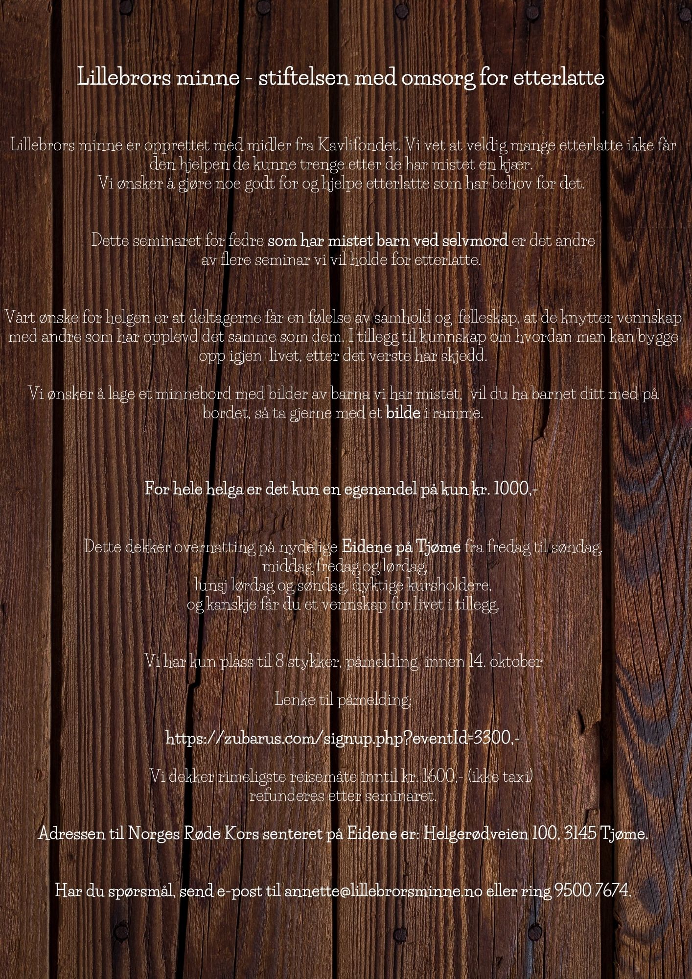 Livsglede, selv om - Seminar for fedre som har mistet barn i selvmord - 26-28.nov`21